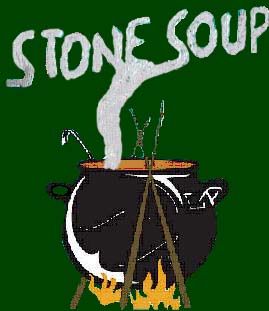 Stone Soup is one of those traditional tales that every culture seems to have its own version of. The one I’m familiar with has a group of hungry travelers entering a village with a large, empty cooking pot. When they ask the villagers for some food, no one wants to give them anything. They proceed down to the river where they fill the pot with water and put some stones in. Then they begin to boil the water. One by one, different villagers come by and want to know to know what they are cooking and if they can have any. The travelers are more hospitable than the townspeople and say they will gladly share their stone soup. Each villager though thinks the soup needs a little something extra and goes home to get it. One by one they do this until everyone has contributed. The result is the most wonderful soup that anyone has ever tasted and they all eat their fill.