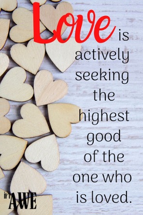 All of this means we must not over-emotionalize love. While it certainly includes feelings love is primarily the mindset of seeking the highest good of others—regardless of how we feel. I think this is the kind of thing Paul was talking about when looking back on his life he said, “When I was a child, I talked like a child, I thought like a child, I reasoned like a child. When I became a man, I put the ways of childhood behind me” (1 Corinthians 13:11). Let’s push past our culture’s concept and anchor ourselves to the love we see manifested in the life of Jesus.