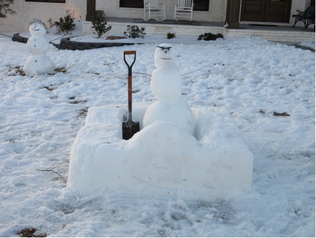On one of those occasions, they built snowmen. Each boy built his own and the middle boy built a fortress around his in the likeness of the Alamo. Each snowman reflected the boys’ personalities, and they had fun building them.
